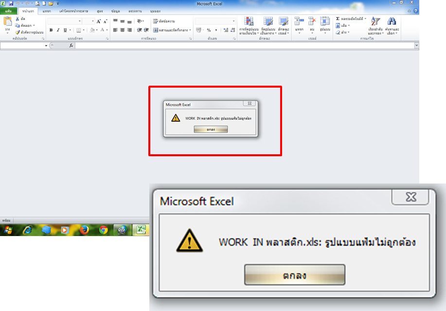 ไฟล์งาน excel เปิดไม่ได้ เมื่อกดเปิด จะมีข้อความเตือนว่า " รูปแบบไฟล์ไม่ถูกต้อง" เวอร์ชั่น excel ตอนนี้ใช้ 2010 คับ แต่ผมเซฟไฟล์นี้เป็น .xls