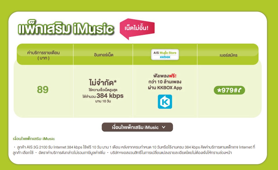 โปรเสริม iMusic 89 บาท ฟรีเน็ต 10 วัน หมกเม็ด ใช้ทันทีไม่ได้ต้องรอ 5 วัน
