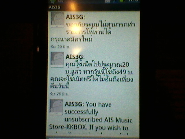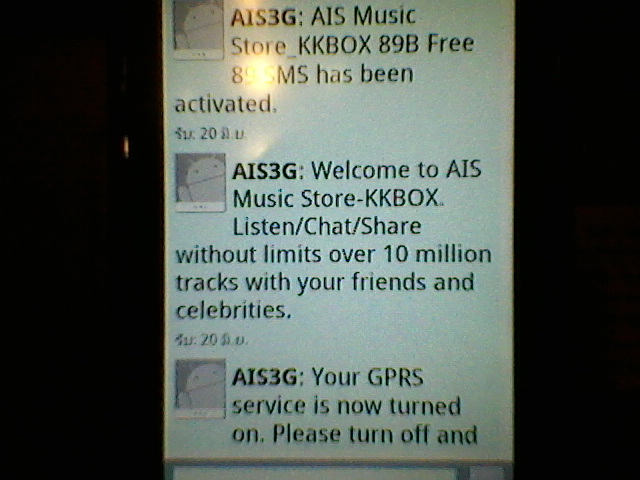 หลังจากนั้นก็เริ่มใช้อินเทอร์เน็ต หลังจากนั้นไม่นานก็พบว่ามี SMS มาแจ้งว่าใช้อินเทอร์เน็ตไปเกิน 20 บาทแล้ว