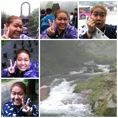 7 พ.ค 57 วันที่ 5 แล้วนะ วันนี้รีบตื่นแต่เช้าตั้งแต่ 6 โมงเช้า เพราะว่าต้องไปอู่หลิงหยวน ไม่อยากออกสายเพราะเป็นวันหยุดด้วย คิดว่านักท่องเที่ยวคงจะเยอะ แต่ดูเหมือนว่าจะโชคร้ายเข้าแล้ว เพราะฝนตกตั้งแต่กลางดึกเมื่อคืน กว่าจะหยุดก็ปาเข้าไปเกือบ 8 โมงเช้า แต่ก็ยังถือว่าโชคดีนะคะ เพราะตอนลงมาที่ล็อบบี้เจอนักเที่ยวชาวอเมริกัน เกาะกลุ่มกันอยู่ 4 คนกำลังยืนฟังเจ้าของโรงแรมอธิบายเส้นทางอยู่พอดี(ภาษาจีนนะคะ เพราะนักท่องเที่ยวกลุ่มนั้นมี 1 คน เป็นไกด์ชาวอเมริกันที่พูดภาษาจีนได้) และเมื่อเขาหันมาเจอเราก็อธิบายอีกรอบเป็นภาษาอังกฤษพร้อมกับบอกว่าเดี๋ยวไปพร้อมกลุ่มนี้นะ เขาจะเรียกรถให้จ่าย 10 Y เหมือนที่ขึ้นรถประจำทางนั้นแหละ คิดในใจเออโชคดีเนอะถ้าทู่ซี้ออกไปก่อนหน้านี้คงต้องเดินไปขึ้นรถที่สถานีเอง อันนี้ขึ้นรถหน้าโรงแรมเลยสะดวกดี และเพราะความที่ฝนตก ทำให้จุดซื้อตั๋วมีนักท่องเที่ยวไม่มากนักไม่ต้องต่อแถวนาน