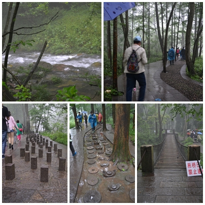เมื่อได้ตั๋วมาแล้วก็เดินเข้าไปเลยค่ะ ระบบที่นี่เขาไฮเทคทีเดียว ใช้วิธีแสกนนิ้วมือเอาก็ได้แล้ว แหม่...ไม่แปลกใจที่ราคาตั๋วแพงเอาเรื่อง สำหรับการเดินในวันนี้ และเป็นเพราะเช้านี้ฝนตกหนักมาก ทำให้ทัศนวิสัยไม่ค่อยดีเท่าไหร่ คุณเจ้าของโรงแรมก็เลยแนะนำให้เดินเรียบลำธารแส้ทองจินเปียนซี (อันนี้ต้องขอโทษจริงๆ นะคะ เราจำไม่ได้จริงๆ ว่าประตูทางเข้าฝั่งนี้เรียกว่าอะไร แต่ฝั่งนี้เป็นทางเข้าอีกทางหนึ่งที่คนส่วนมากมักจะมาในวันที่ 2 หากใครทราบเข้ามาแนะนำนะคะ)