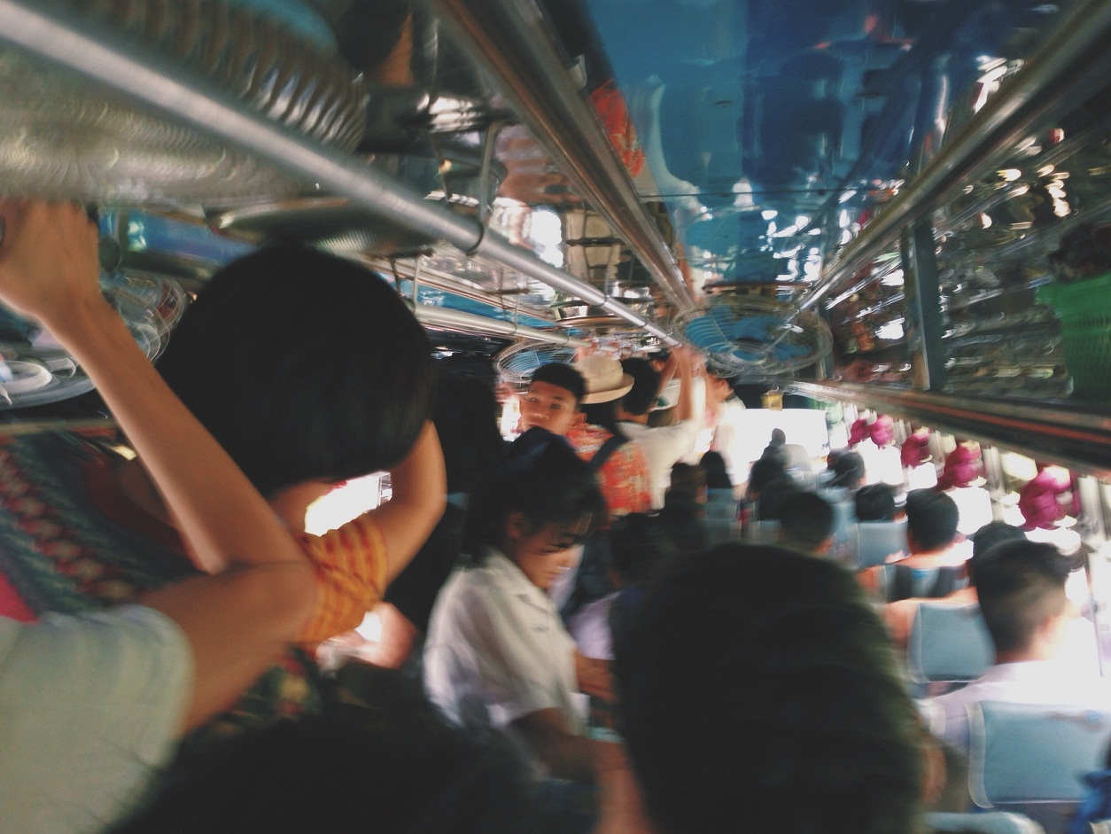 คือเด็กนักเรียนแน่นเต็มรถอ่ะ คือเต็มจริง ๆ แต่ก็ต้องขึ้นไป