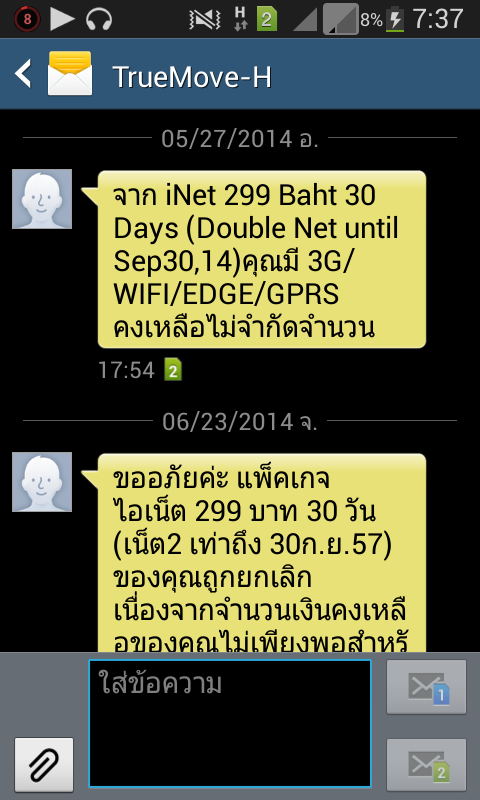 วันนี้ผมกลับที่บ้านต่างจังหวัด แม่เงินมือถือหมดให้เติมเงินเติมไป 150 บาท มี sms แจ้งเตือนเงินเข้า 150 บาท แต่ไปสมัครเน็ตให้แม่ไม่ได้ เช็คเงิน เหลือ 27 บาท ผมโคตรเซ็ง :)โกงกันหน้าด้านๆ ไม่รู้มันโ