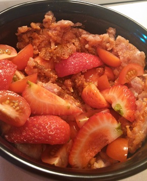 - มะเขือ ..พอดีที่ซื้อเก็บไว้มันเหลือน้อย ฝนก็ตกเลยเอาสตรอเบอรี่มาใส่แทนค่ะ