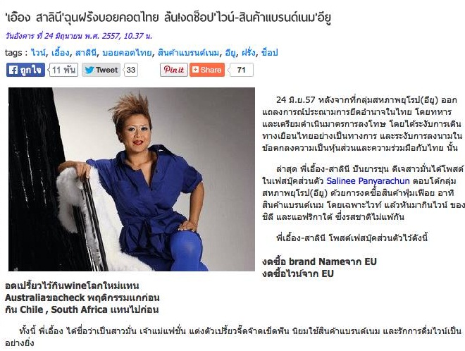 ไวน์ เอื้อง สาลินี บอยคอตไทย สินค้าแบรด์เนม อียู ฝรั่ง ช็อป
