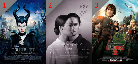 อันดับ 1 : Maleficent เป็นภาพยนตร์ที่ดัดแปลงมาจากแอนิเมชั่นสุดคลาสสิค Sleeping Beauty หรือ เจ้าหญิงนิทรา ซึ่งสะท้อนมุมมอง ความรู้สึกของแม่มดใจร้ายในแบบที่ไม่เคยมีใครรู้ โดยเนื้อเรื่องแฝงไปด้วยแนวคิด ที่สำคัญต้องยอมรับว่าภาพและเอฟเฟคนั้น สวยงาม อลังการบวกกับการแสดงของแองเจลีน่า โจลี่ ในบทบาทของมาเลฟิเซนต์ ก็ช่วยให้ภาพยนตร์เรื่องนี้น่าดูเป็นอย่างมาก แถมยังสามารถคงมนต์เสน่ห์แบบการ์ตูน Disney ได้อย่างครบถ้วน อีกด้วย