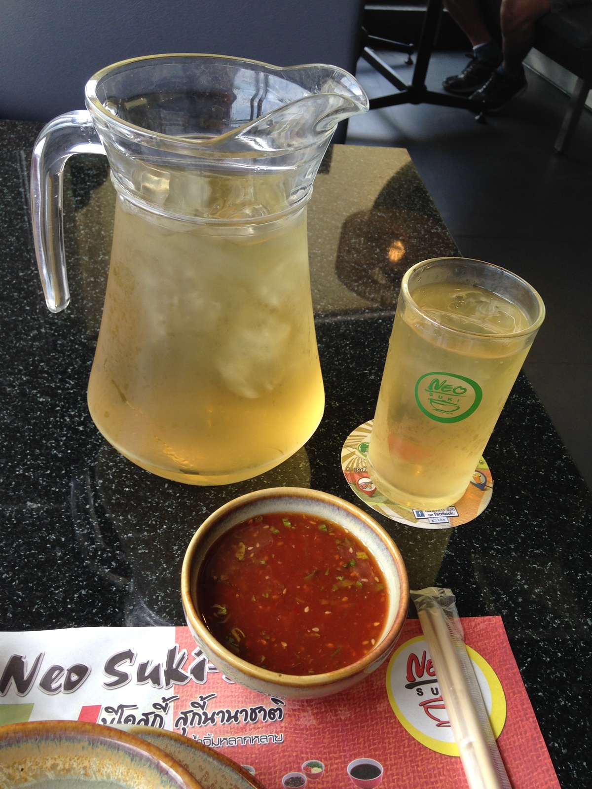 สักพักน้ำจิ้ม กับน้ำชาก้มา ให้มาเป็นเหยือกเลย จะได้ไม่ต้องเติมบ่อยๆ