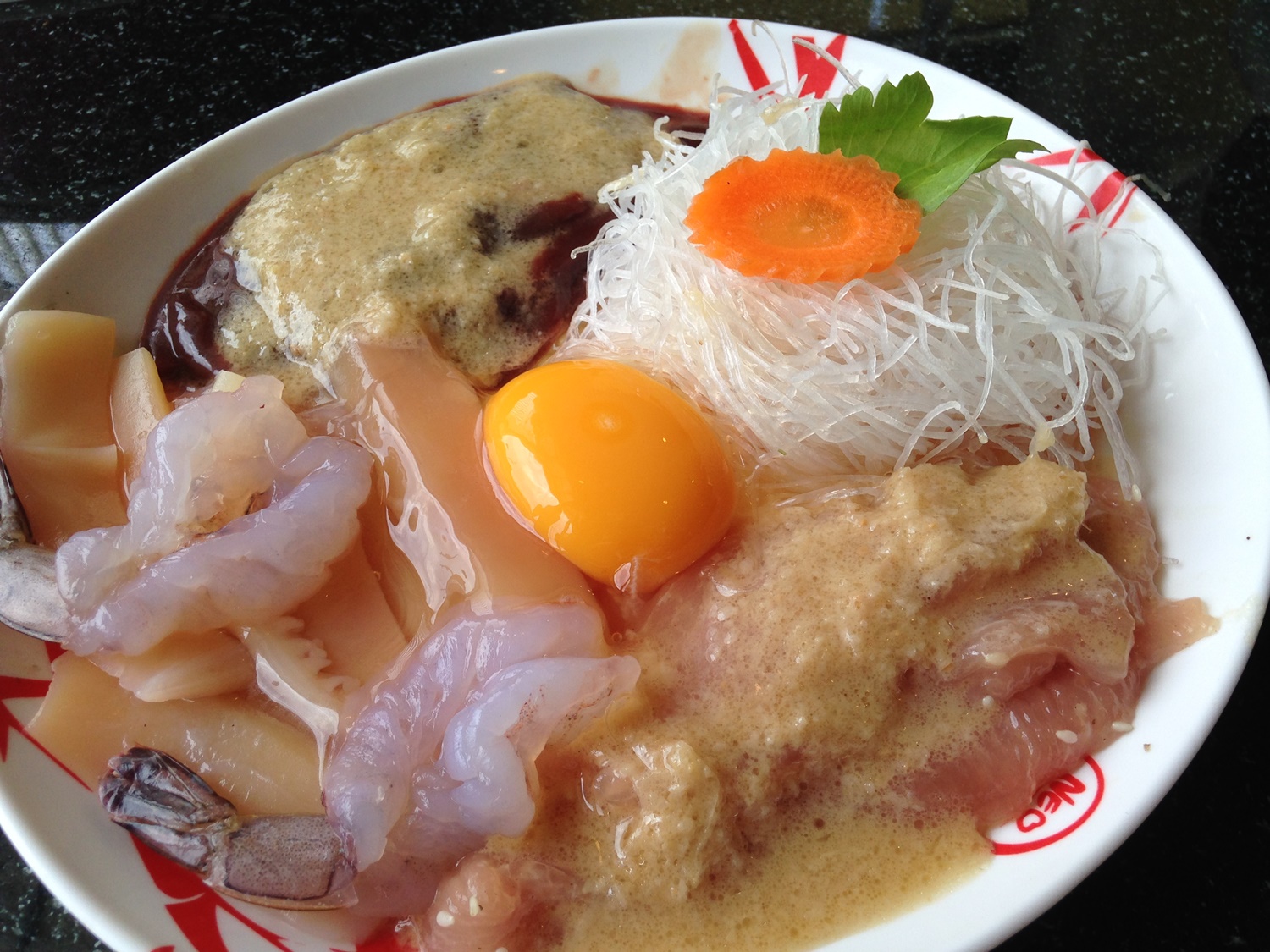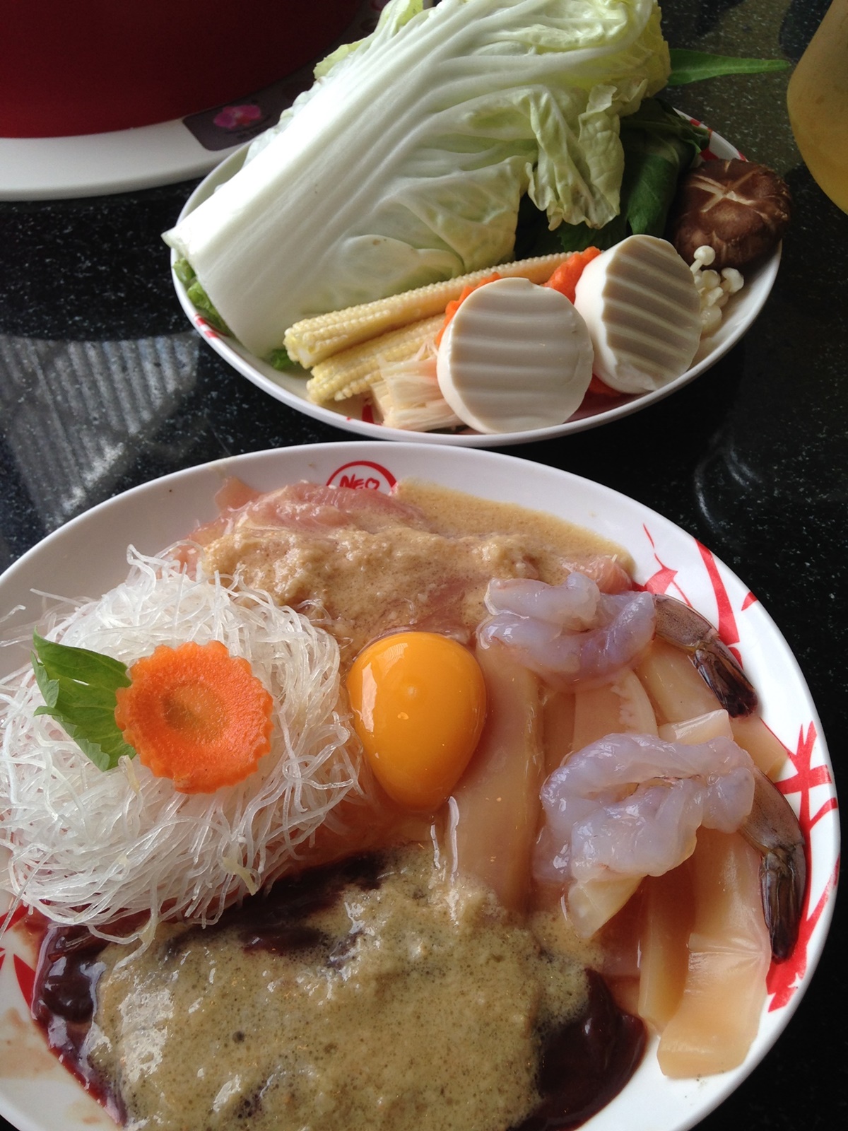 จานนี้ก็อร่อยครับ หมูหมักซอสไหหลำ เวลาทานก็รอน้ำเดือดตีๆให้เข้ากัน เทลงไปเลย รอสุกก็กินได้