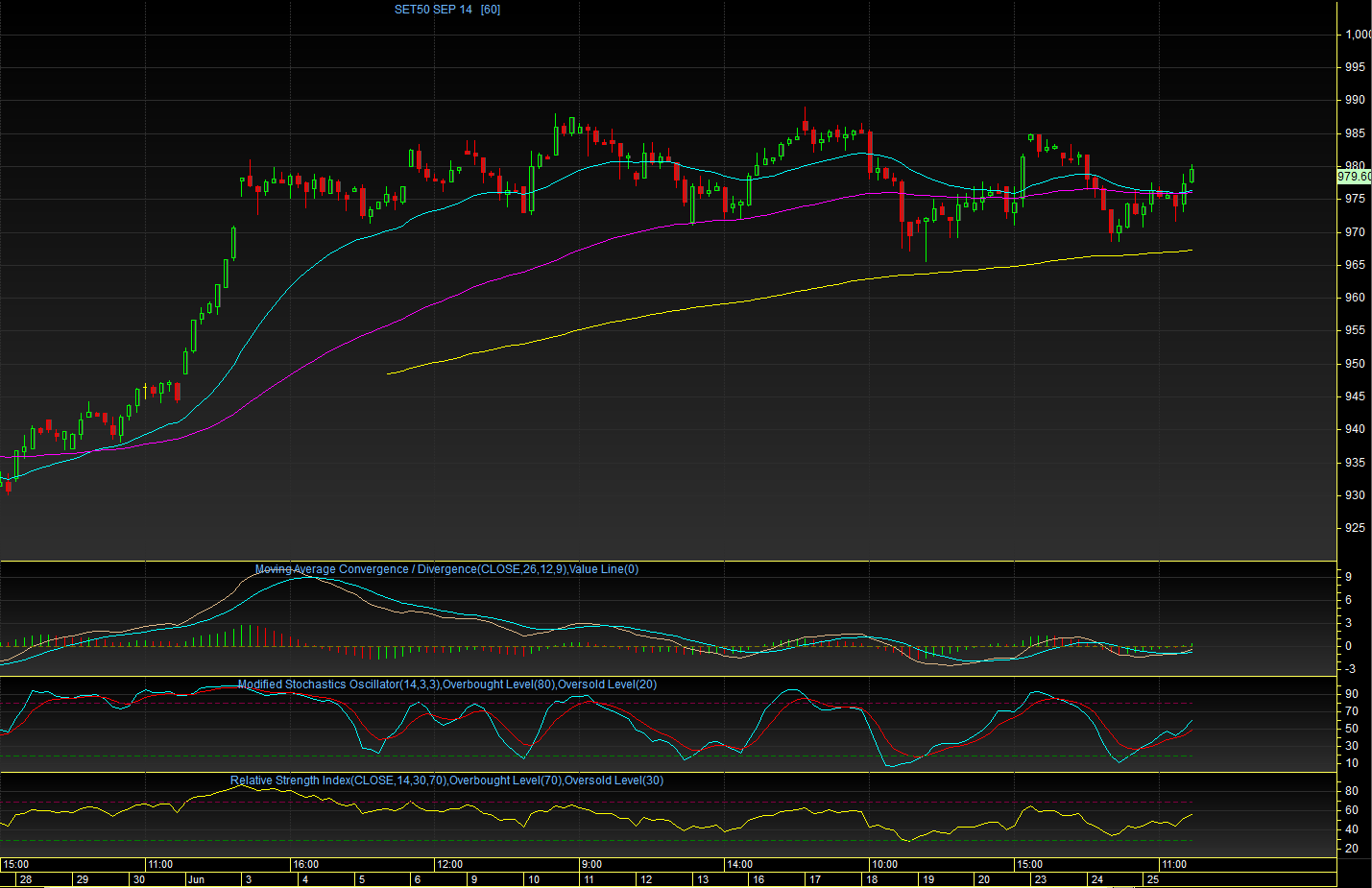 S50U14 TF Day : เมื่อวานนี้ ยังคงแกว่งตัวในกรอบแคบๆ (970-980) แต่ช่วงท้ายตลาด ก็สามารถพุ่งขึ้นไปปิด
