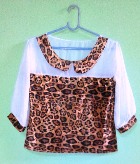 1.Leopard เสื้อครอปลายเสือผ้ากำมะหยี่คอบัว แขนยาวผ้าชีฟอง (ปล่อยพิเศษ 50 บาท) Sold Out