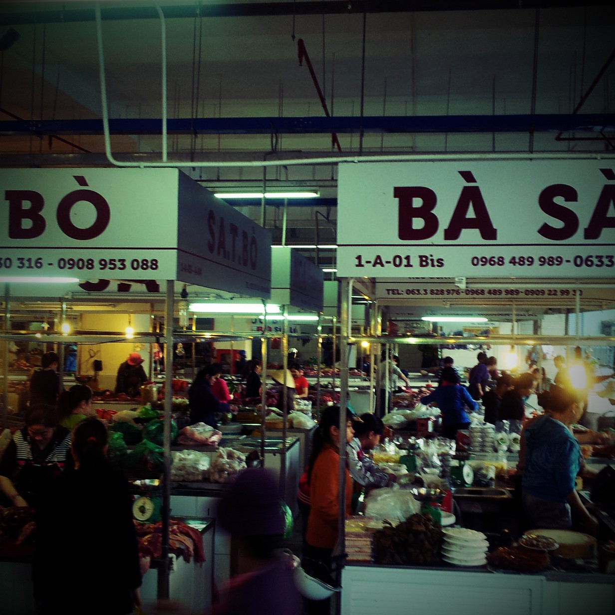 ตลาดสด ขายพวกเนื้อสัตว์ เดินเข้าไป เลือดไหลเป็นทาง มาจากแผลขายเนื้อต่างๆ กลิ่นคาวคลุ้งไปหมด