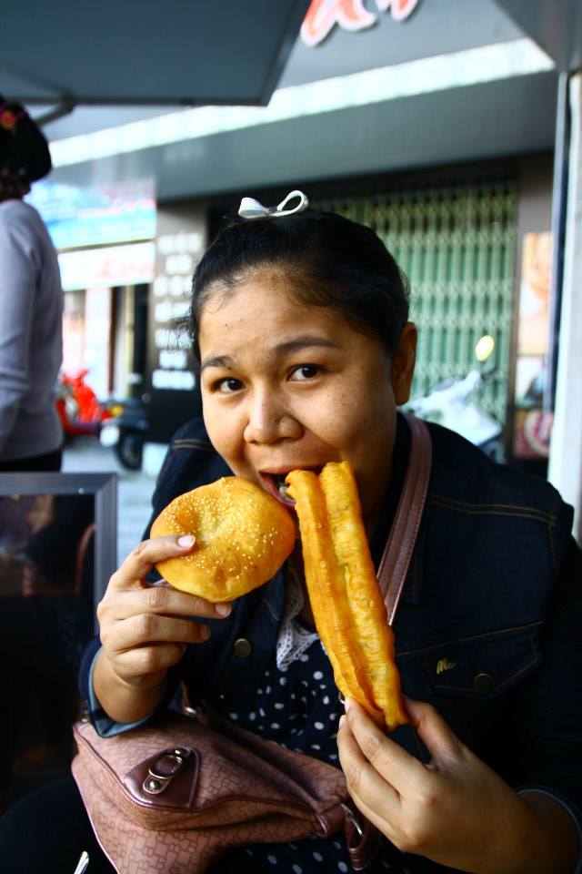 ปาท๋องโก๋กะซาลาเปาหวานที่นี่ลูกใหญ่มาก ลูกนึงกินได้ทั้งบ้าน แต่เธอกินได้คนเดียวหมด !!!~