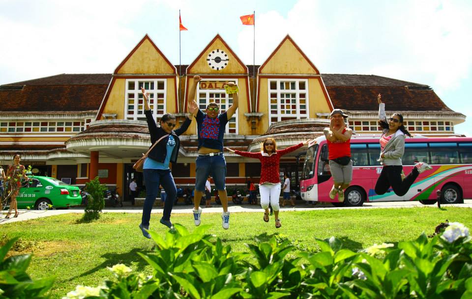 เริ่มที่แรกครับ เราต้องไปนั่งรถไฟดาลัดชมวิวกันซะหน่อย เตรียมตัวเสร็จ เราก็บึ่งไปสถานีรถไฟ ออกไปถึงสถานีประมาณ 8 โมงครึ่ง ไปดูเที่ยวรถไฟ ปรากฎว่ามีรอบ 9 โมง กับ 11.55 น. โมง รอบ 9 โมงเต็ม ก็เลยต้องเป็นรอบ 11 .55 น. เราเลยซื้อตั๋วไว้ก่อน เพราะที่นี่คนมาเที่ยวกันเยอะพอสมควร แต่เท่าที่สังเกต ผู้ใช้บริการส่วนใหญ่เป็นคนเวียดนามเองนี่แหล่ะ !!!~