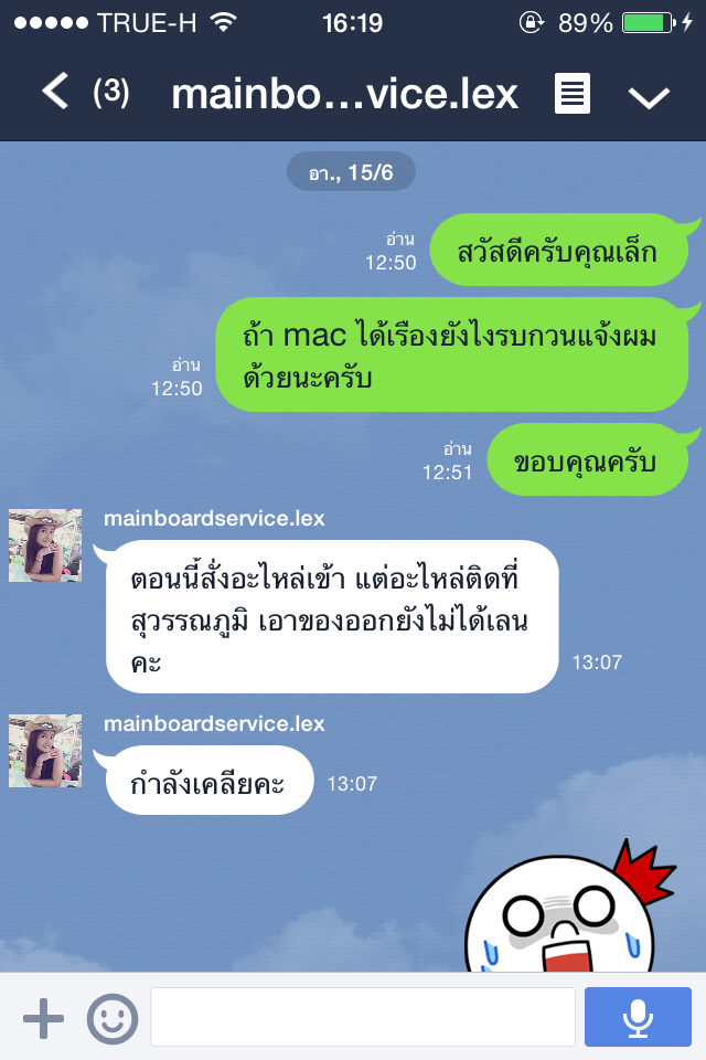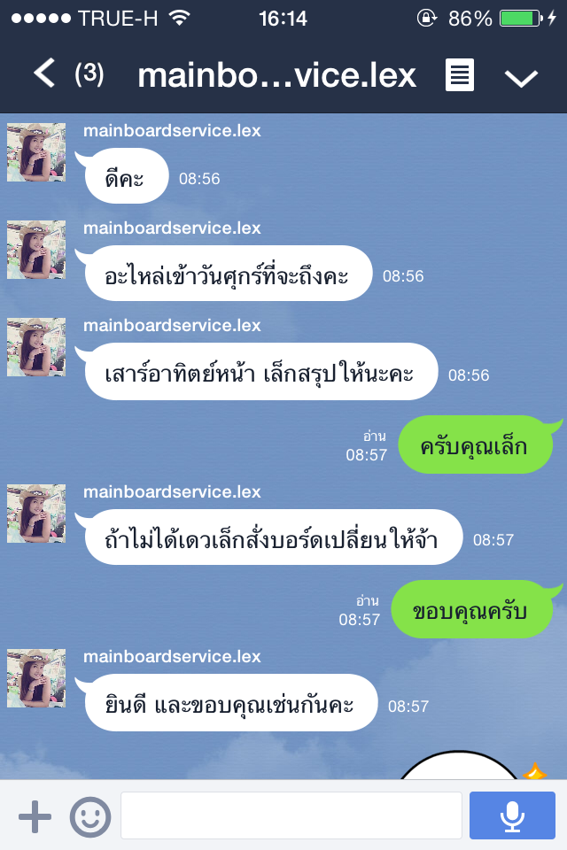 จากนั้นก็รอครับ เขาก็แจ้งว่าอะไหล่ยังไม่มา ผมก็เลยรอครับ ไม่กี่วันก็มีลายมาตามนี้ครับ