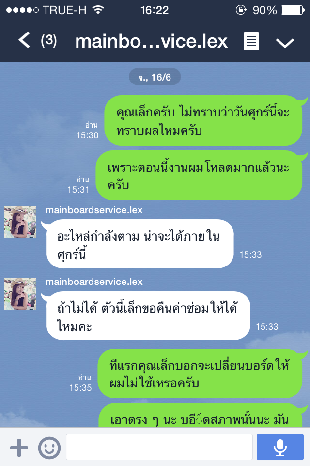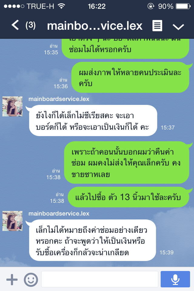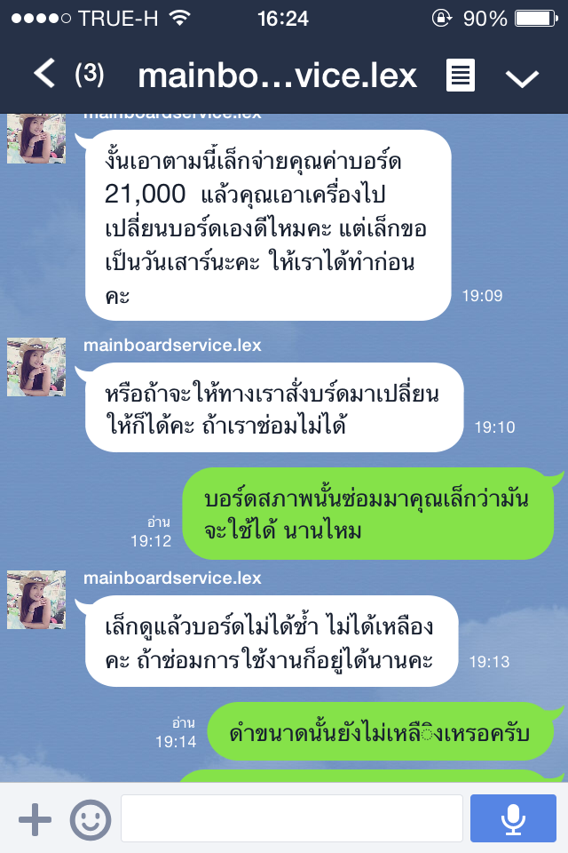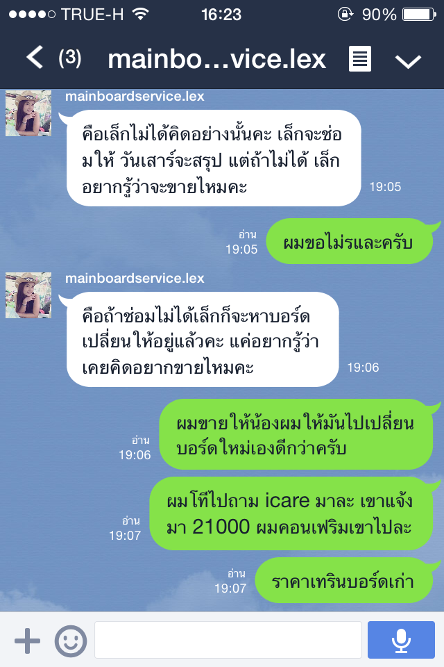 ผมเลยถามไปว่าอ้าวทีแรกไหนจะเปลี่ยนบอร์ดให้ไม่ใช้เหรอ ทางร้านก็ตอบมาว่า