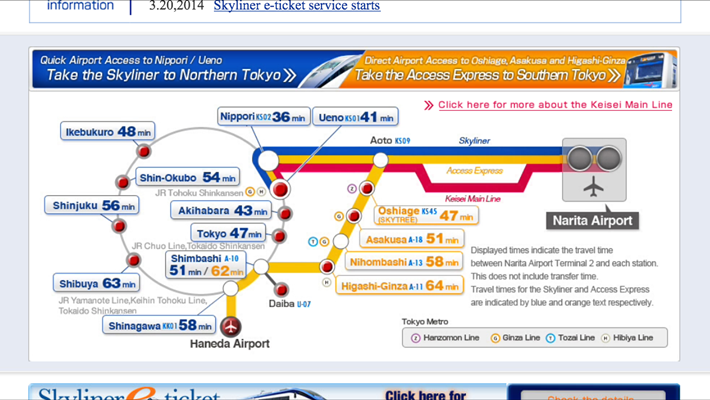 อันนี้เป็นเส้นทางของsky liner กับ sky accessของ keisei