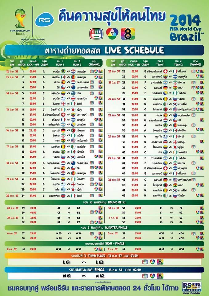 สงสัยเรื่องเวลาการถ่ายทอดสดฟุตบอลโลก 2014 ครับ