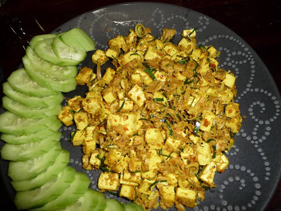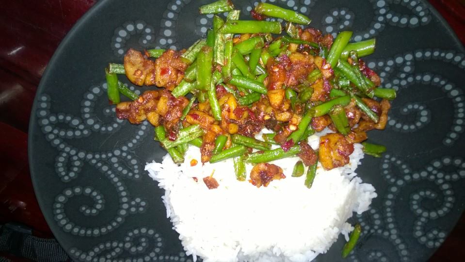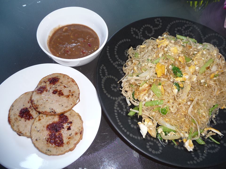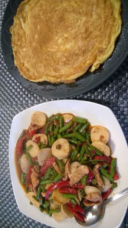 ช่วงนี้จะเห็นได้ว่ามีส้มตำบ่อยมาก เพราะกินคนเดียวค่ะ มีมะละกออยู่สามลูก เลยต้องจัดการตำมันได้แทบทุกวัน อีกอย่างเป็นคนชอบเผ็ดค่ะ อาหารก็จะมีแต่เผ็ดๆ สามีก็ชอบทานเผ็ด แต่คั่วกลิ้งนี่กินคนเดียวนะ เป็นคนไม่ค่อยชอบเนื้อสัตว์เท่าไหร่ กินได้ก็ไก่ กับหมูบ้าง แต่ไม่บ่อยค่ะ ส่วนใหญ่จะใช้ทูน่ากระป๋องทำด้วย เช่นขนมจีน คั่วกลิ้งทูน่า และ ยำหรือลาบ อะไรก็ว่าไป เป็นคนชอบกินเส้นค่ะ ขนมจีน ก๋วยเตี๋ยวกินบ่อยมาก