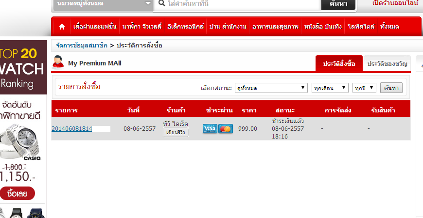 สั่งซื้อเครื่องออกกำลังกายจากร้าน TV DIRECT ใน ตลาดดอทคอม รอนานมากค่ะ