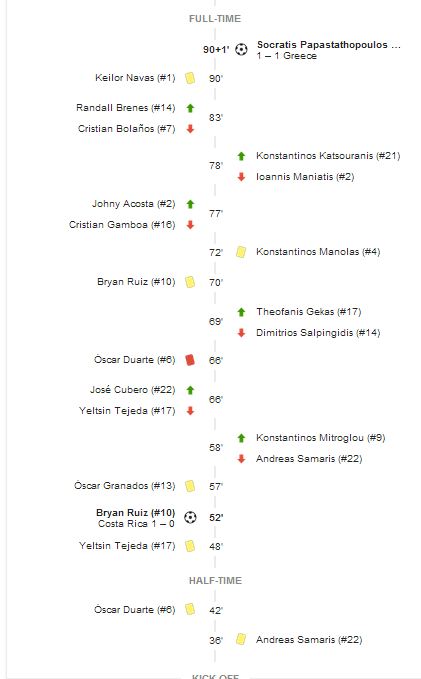 ในทางกลับกัน คอสตาริก้า เสียใบเหลืองไป 5 ใบ