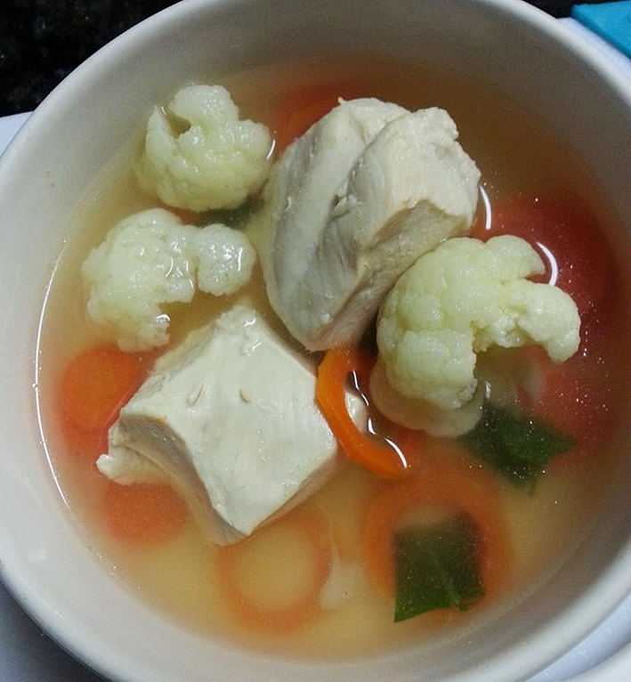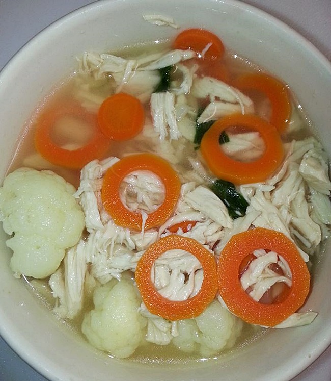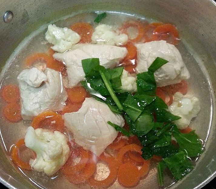 พอไก่สุกดี แครอทนุ่มก็ใส่กระหล่ำดอกกับผักโขมเลยค่ะ แป๊บเดียวก็ปิดไฟได้เลยนะคะสุกแล้วๆ