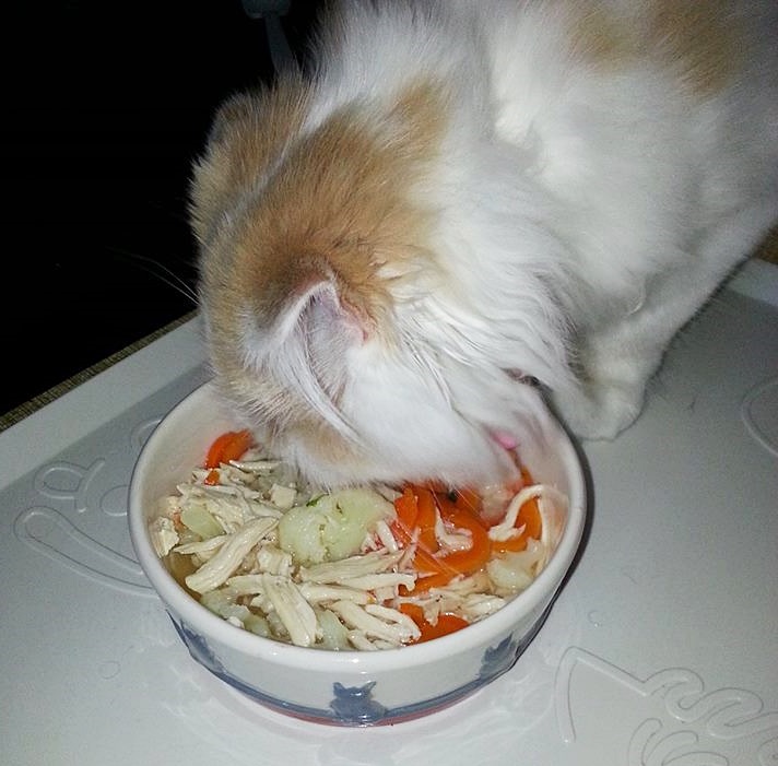 มี๊ต้องรอให้อุ่นๆ ถึงจะฉีกไก่ให้พอคำสำหรับหนู (มี๊รักหนูจนหนูอึดอัดแล้วนะคะ รักมากเกินไป)