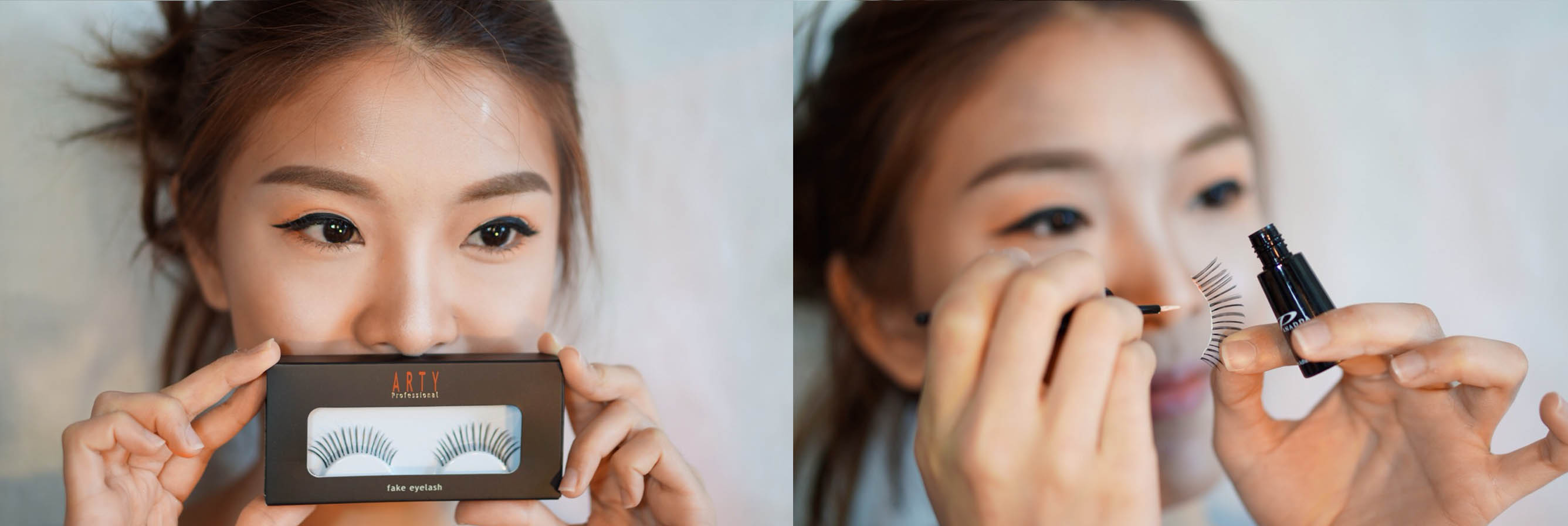 ถัดมาขนตาบน ของ Arty สปอนเซอร์ให้มา ส่วนกาวที่แย้ใช้จะเป็นของ BSC Panadda แย้ว่าเป็นกาวที่ดีที่สุดแล้ว เพราะว่าไม่ต้องรอให้เซตตัว พอเราทากาวเสร็จ ทิ้งไว้ 3 วิ ก็สามารถติดลงไปบนตาของเราได้เลย เลิศเลอ แต่ขนตาของ Arty จะเป็นก้านเอ็น สำหรับคนที่ตาบนโค้งแบบหญิงแย้ ก็จะมีปัญหาขนตาเด้งออกมา โดยเฉพาะตรงหัวตา จะเป็นปัญหามากเลย โดยส่วนตัว แย้จะชอบขนตาแบบก้านไหมหรือก้านด้ายมากเลย เพราะว่าจะติดอยู่ทั้งวันโดยที่ไม่เด้งหลุดออกมา ไม่ต้องพกกาวติดขนตาเลยทีเดียว