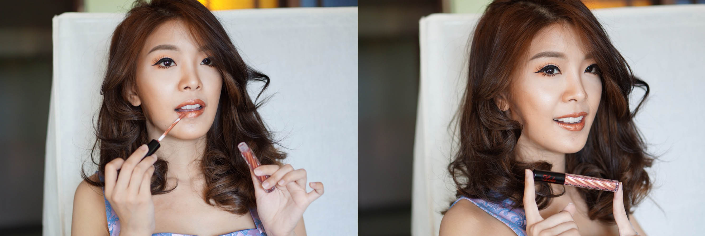 หลังจากนั้นตบท้ายด้วยลิปกลอสที่สีแน่นมากของ Lola สีส้มอิฐ ทางแบรนด์ส่งมาให้ใช้ฟรีนะจ้ะ ลิปกลอสจะมีความ pearl และ ทองในตัว ได้ลุคแบบ