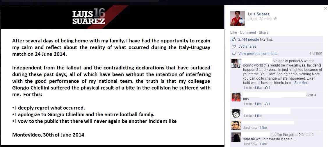 โดยที่ทั้งลิเวอร์พูลเองและอุรุกวัย ไม่รู้เลยด้วยซ้ำว่าเค้าจะออกมาขอโทษ