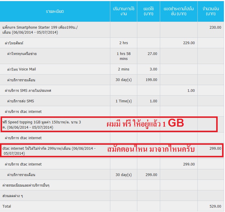 มีปัญหาอยู่ว่า โปรฯเสริมอินเตอร์เน็ต 299 ใช้เน็ตได้ 750 MB โผล่มาได้ไงครับ