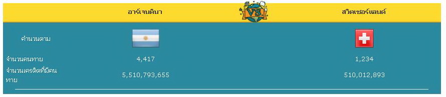 ทายบอลต่ออาร์เจนติน่า 100,000 เครดิต ถ้าถูกจะได้ประมาณ 109,255 เครดิต(กำไรประมาณเก้าพันสองร้อย)