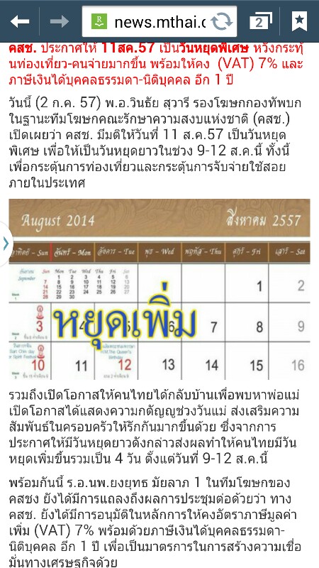 11สิงหาคม จะเป็นวันหยุดอีกเพื่อประชาชน