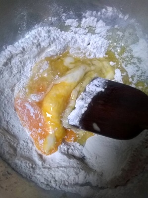 ต่อไปก็ผสมแป้งกับ ไข่ไก่ และเนย ตวงตามความเหมาะสมนะ เรากะเอา55555