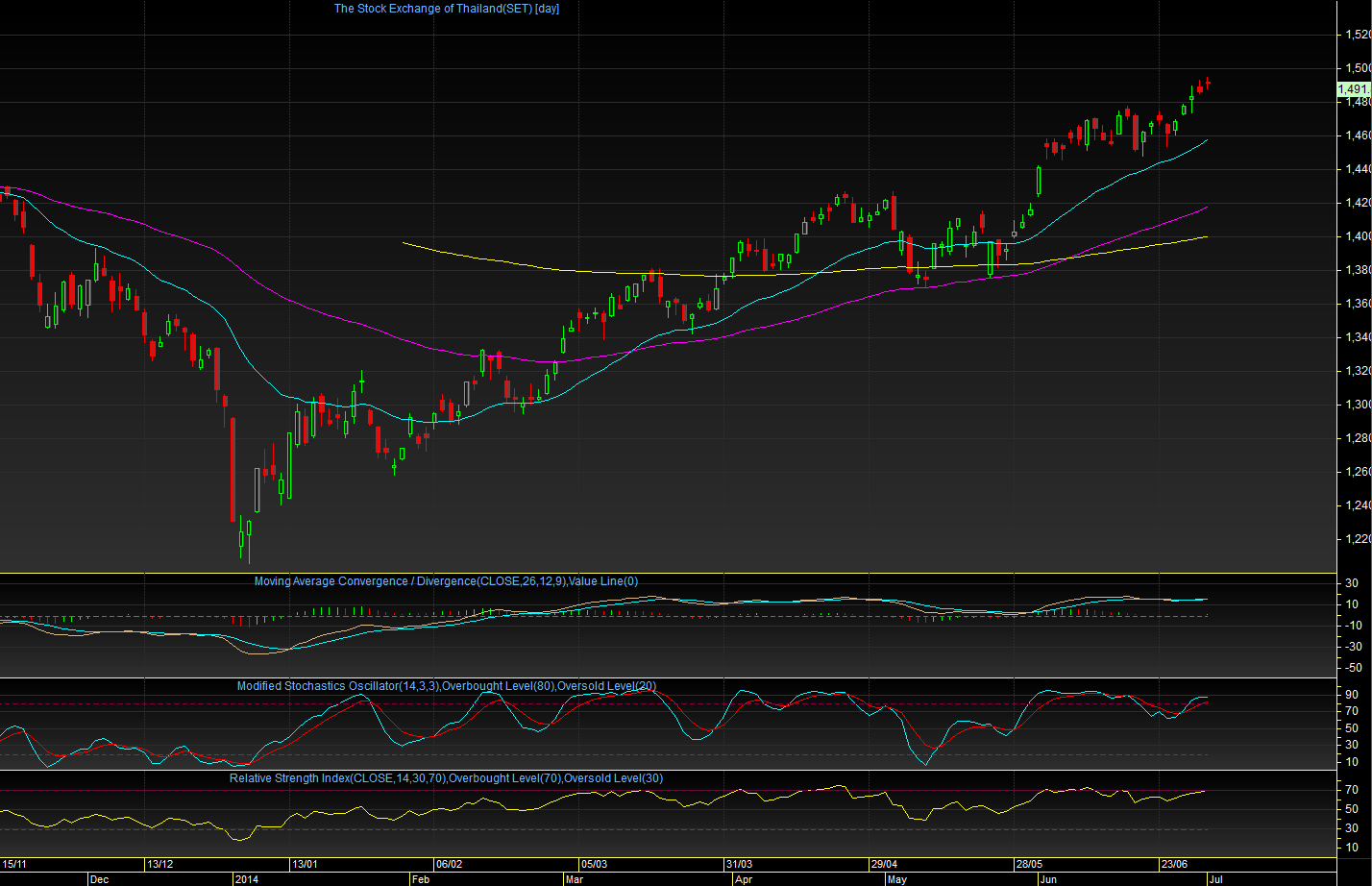 ดัชนีแกว่งตัวในแดนบวก และปิดไปที่ระดับ 1491 จุด +6.06 จุด วันนี้มาลุ้นกันต่อว่า จะสามารถพุ่งขึ้นไป ยืน 1500 จุด ได้หรือไม่