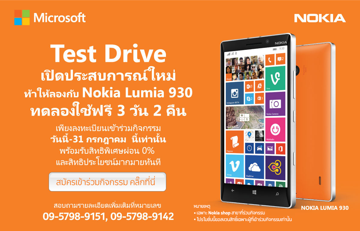Test Drive ! Nokia เปิดให้สามารถทดลองใช้ Nokia Lumia 930 มากถึง 3 วัน 2 คืนแล้วววันนี้