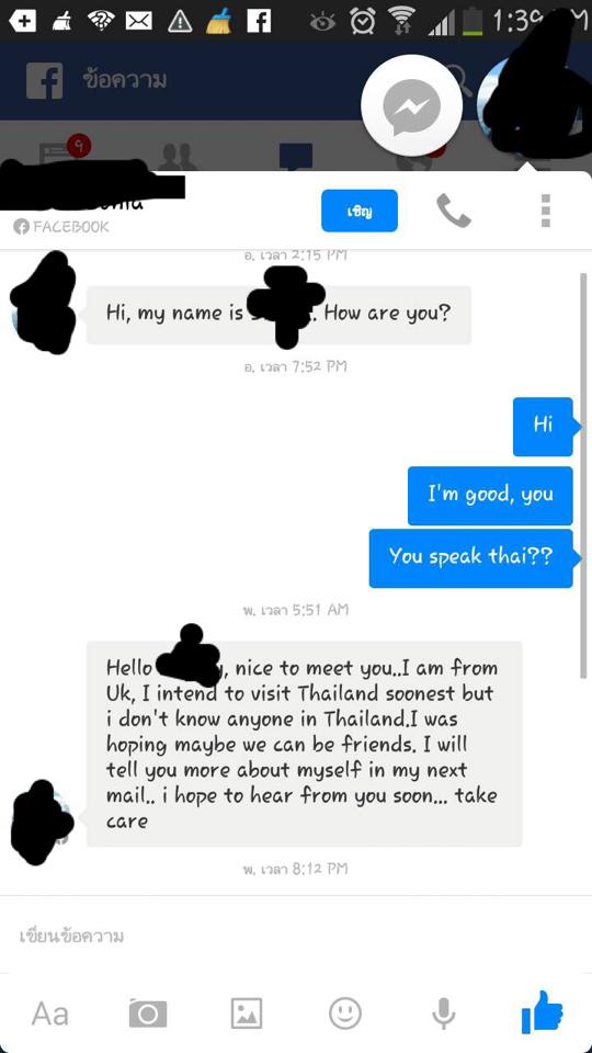 อยู่มันวันนึง ได้มี ผู้หญิง 1 คน ได้เข้ามาทัก ในinbox เป็นภาษาอังกฤษ ก็ประมาณว่า