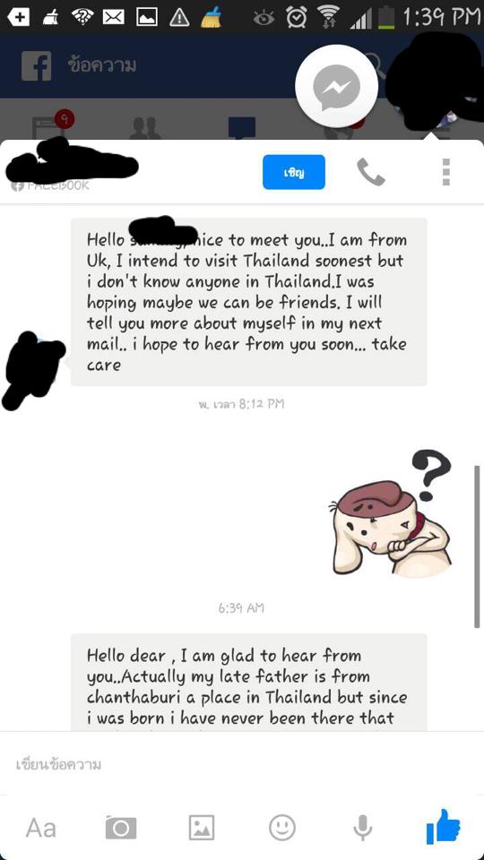 เราก็เลยคิดว่าเขาคงพูดไทยได้ หรือเขาจะติดต่อเรื่องงาน เราก็เลยพิมพิมพ์ตอบไป
