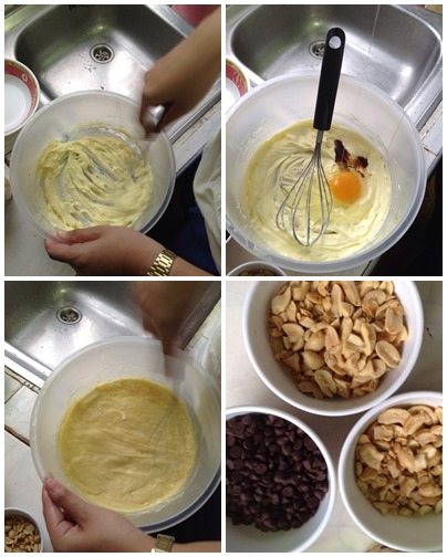 ขั้นตอนการทำไม่ยุ่งยากค้นวิธีการทำได้ทั่วไปแต่ที่เลือกทำครั้งนี้เป็นสูตรของพี่จาดี ผู้เลื่องลือ ไม่ต้องเตรียมอะไรมากเลย เพราะเมย์นั้นก็เป็นคนที่ทำขนมบ่อยอยู่แล้วของเหล่านี้จึงมีติดครัวค่ะ จะมีมาเพิ่มก็แค่ ถั่วและเม็ดมะม่วงหิมพานต์ เอาไว้โรยหน้าคุกกี้และก็ผสมในเนื้อคุกกี้เท่านั้น ตื่นเต้นมากบอกเลยด้วย