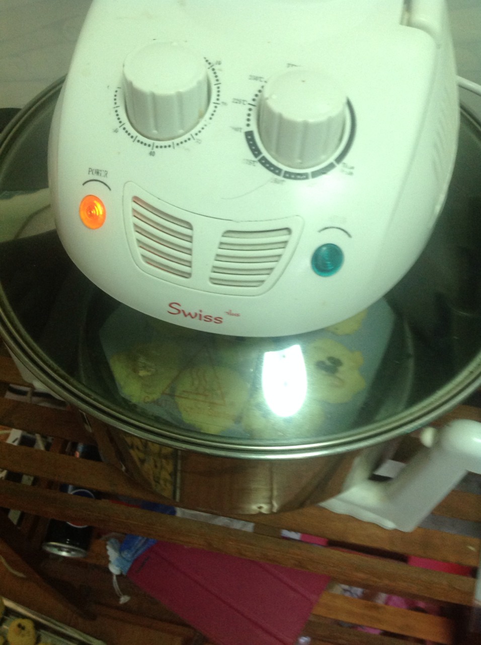 พอลอตสุดท้ายลองอบกับหม้อฝาลมร้อนบ้างอยากรู้ว่าจะเป็นยังไง ปรากฎว่า สีสันสวยกว่า นิดนุง แต่สุกยากมากและก็ไม่แข็งตัวด้วย เสียดาย