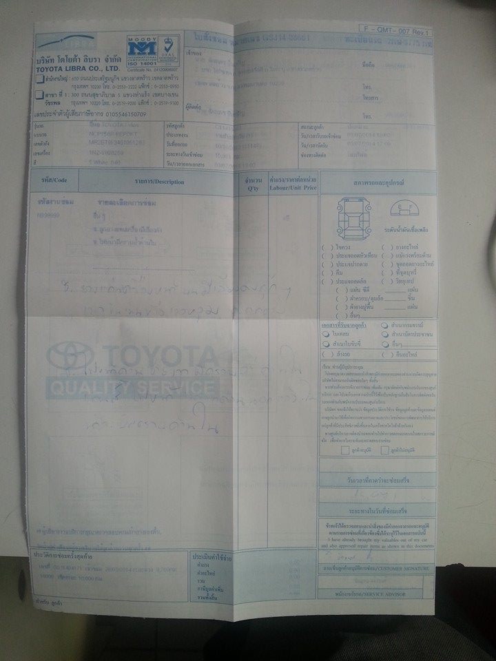 วันนี้เวลา 13.00.ที่ โตโยต้าลิบาผม ได้เอารถเข้าไปเช็คยางแทนเครื่องดังและไฟหน้าเป็นคราบตอนเวลาเปิดไฟ ได้เอารถออกไปลองกับช่าง ก่อนจะออกจากศูนย์ต้องผ่านลูกระราดข้างหน้าศูนย์ผมก็ได้เสียงยางแทนเครื่องดังช่างบอกไม่เห็นได้ยินผมเลยเขาไปลองวนหลายรอบช่างบอกไม่ได้ยินผมได้ยินตลอดอะครับในระหว่างลองพอกลับมาที่ศูนย์ช่างคนที่บอกให้กลับบอกพี่เคยมีประวัติที่ศูนย์กรุงไทยบอกให้กลับไปที่ศูนย์กรุงไทย เป็นเพื่อนๆจะทำไงดีครับ
