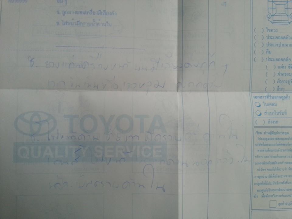 ศูนย์โตโยต้ารัตนาธิเบศน์ไม่รับประกันทั้งที่อยู่ในช่วงประกัน
