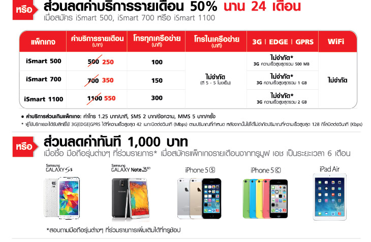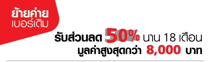 โปรโมชั่นตัวส่วนลด 50% 18 เดือน จะยกเลิกโปรโมชั่นตามที่ประกาศก่อนกำหนดอะไม่ว่า แต่ช่วยเอาออกจากเว็บด้วยจะได้ไม่เข้าใจผิด เพราะย้ายมาจริงมันได้แค่ 12เดือน ไม่มีมากกว่านี้แล้ว ไม่ว่าจะเป็นโปรโมชั่นตัวไหนก็ตาม จะบอกว่าไม่เข้าเงื่อนไขก็ไม่ใช่ เพราะโปรโมชั่นระบุเงื่อนไขเพียงว่า "ย้ายค่าย" เท่านั้น และไม่มี * พ่วงทางด้วย (ได้สอบถามจาก CC แล้วได้สูงสุดเพียง 12 เดือน และได้รับ smsยืนยันส่วนลดแล้ว มาเพียง 12 เดือนจริงๆ)