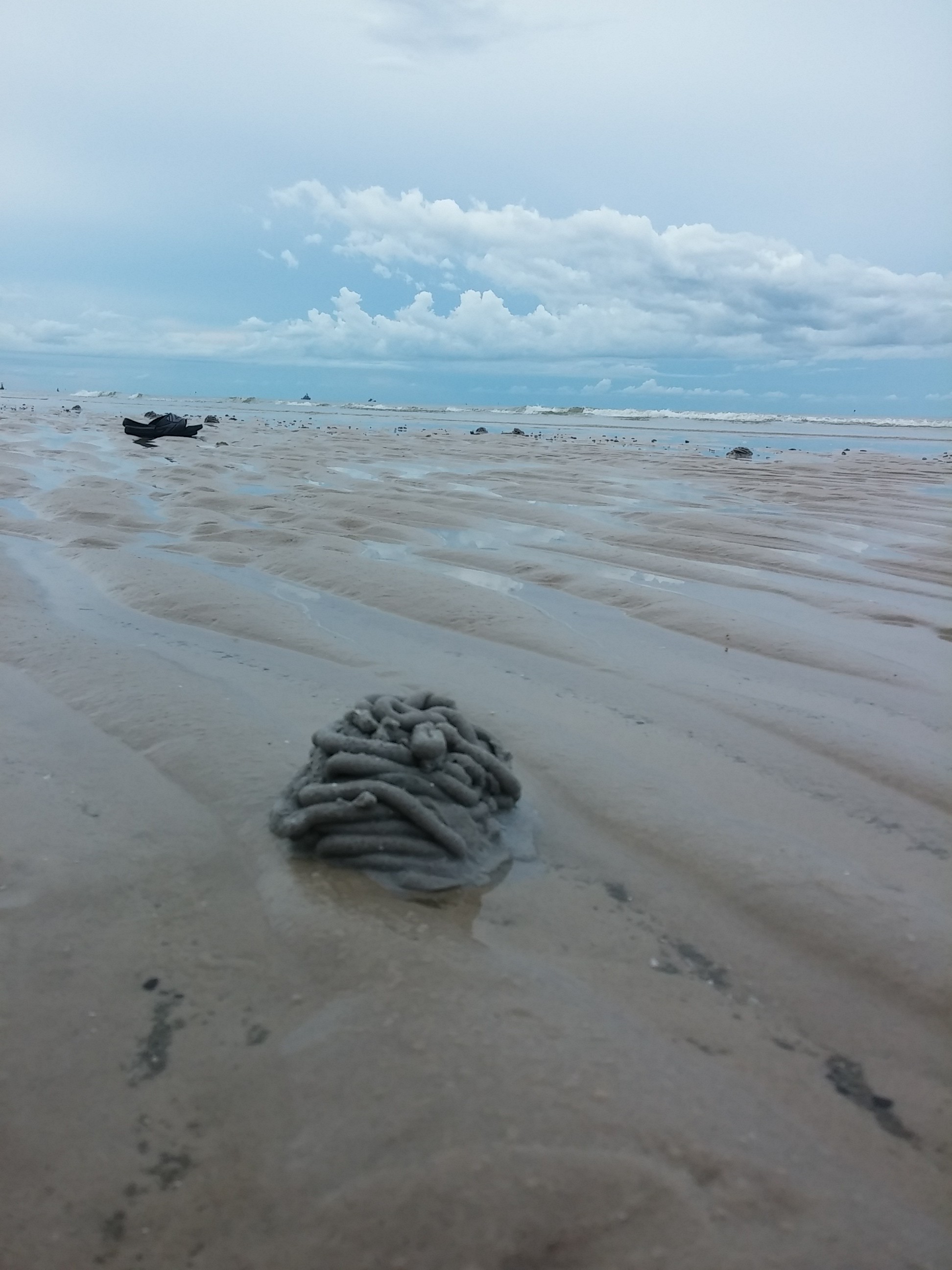เมื่อวานไปเที่ยวหาดเจ้าหลาว ที่จันทบุรีมาค่ะ บนชายหาดมีกองเส้นๆ ที่หน้าตาเหมือนอึของตัวอะไรสักอย่าง กองเต็มหาดทรายไปหมด ลองเดินเข้าไปดูใกล้ๆ มันก็เหมือนทราย แต่