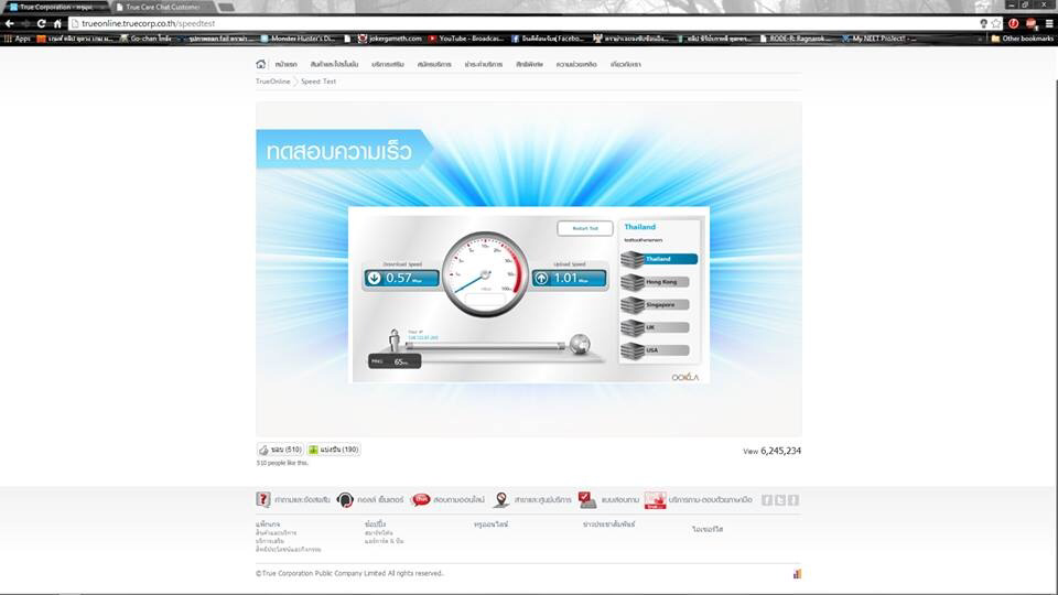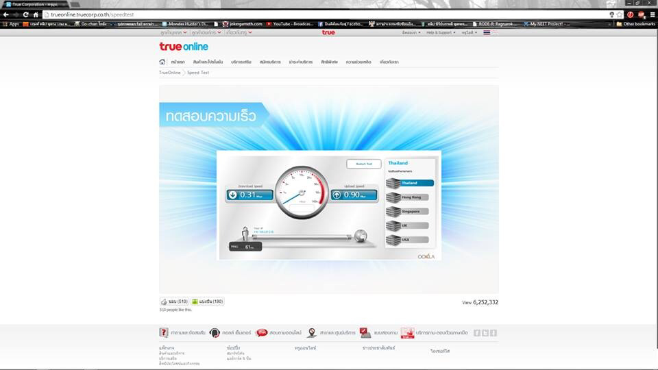 ที่บ้านใช้ของทรูเดือนละ 599 มานานแล้วตั้งแต่สมัยเรียน ม.ปลาย (นานมาก555) ไม่ค่อยได้ทำไรดูหนัง โซเชียล จนมารู้สึกว่ามันช้าได้สักพักทั้งในคอม ทั้งมือถือ จึงลอง Test speed ดู ได้เท่านี้ ที่บอกว่า 59