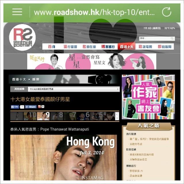 โป๊ป ธนวรรธร์ ติดอันดับ 9 จาก Top 10 most popular Thai actor โหวตโดย ผู้หญิงฮ่องกง