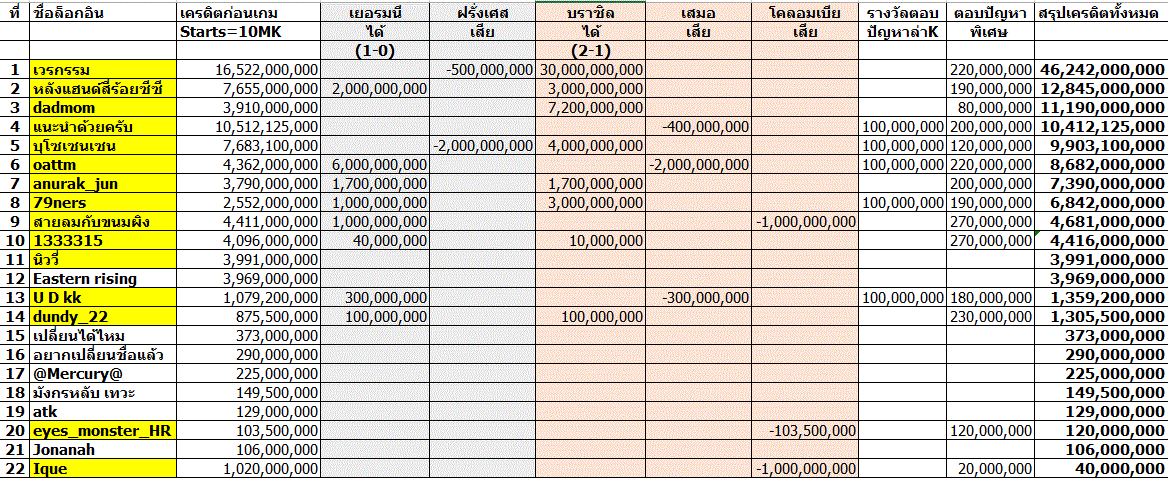 สรุปเครดิตล่าสุดครับ