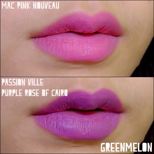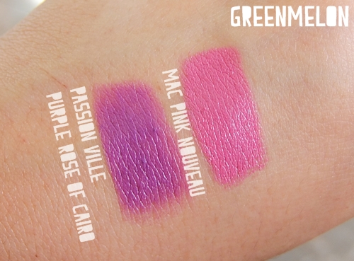 Purple rose of Cairo จะเป็นเนื้อแมต ส่วน Pinl Nouveau จะเป็นเนื้อ Satin ค่ะค่อนข้างชุ่มชื้นมากกว่า