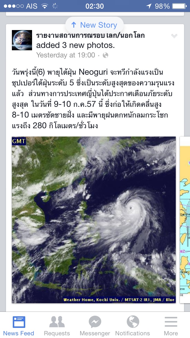กรณีนี้ไต้ฝุ่น Neoguri เพิ่มกำลังแรงระดับ 5 แล้วค่ะ ค่อนข้างกังวลมากเลย
