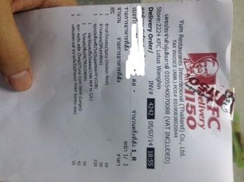 วันที่ 5 กรกฎาคม 2557 ได้สั่ง KFC online