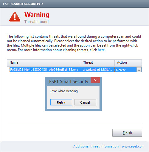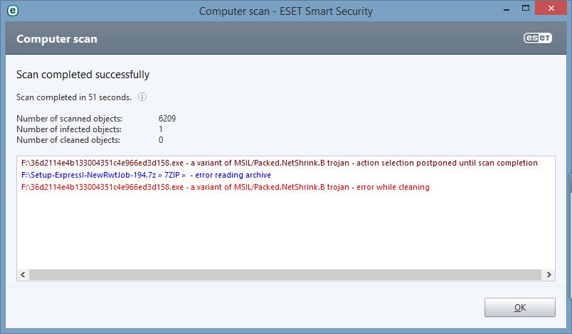 ESET Smart clean packed.netshink.b trojan ไม่ได้ ทำไงดีคะ